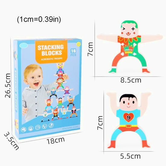 16 figures to stack on top of each other to form a block and keep it balanced.