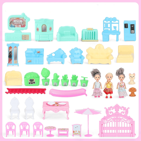 - Over 35 accessories included : Furniture, decorations and 3 articulated dolls with interchangeable outfits and hairstyles to vary the scenarios.