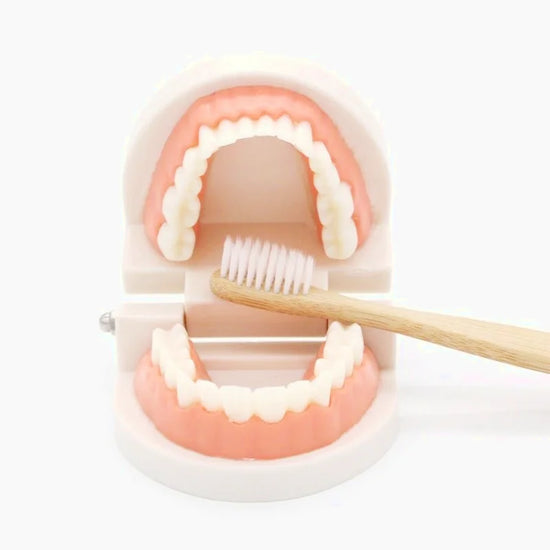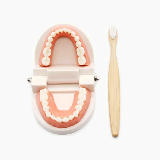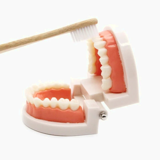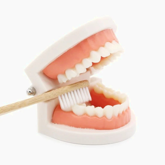 Show him how to brush his teeth with our learning toy, by moving back and forth on his chewing surfaces.